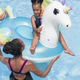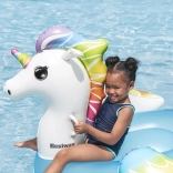 Rozverná nafukovacia hračka do vody v tvare jednorožca prinesie deťom množstvo letnej radosti. Má priestranné sedadlo, integrované úchyty pre istotu a je z odolného PVC. Skvelé do bazéna, na jazero aj k moru. Maximálna nosnosť 45 kg a vekové určenie od 3 rokov zaručujú bezpečnú a stabilnú zábavu pri vode. Súčasťou je aj opravná záplata.