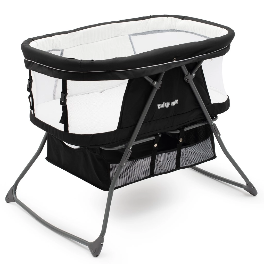 Kolíska BABY MIX DreamyNest kombinuje moderný dizajn s premyslenou funkčnosťou. Vďaka možnosti jemného hojdania ľahko upokojí vaše bábätko, zatiaľ čo priedušné sieťované boky zabezpečujú lepšiu cirkuláciu vzduchu a prehľad o dieťatku. Integrovaná sieťka proti hmyzu chráni pred komármi a iným hmyzom, takže spánok je nerušený doma aj vonku.