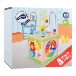 Táto kompaktná a multifunkčná motorická kocka je ideálna do menších detských izieb aj herní. Ponúka oddeliteľný kovový labyrint, ozubené kolieska, hodiny a logickú hru, vďaka ktorým deti prirodzene rozvíjajú jemnú motoriku, koordináciu oko–ruka a sústredenie. Veselý farebný dizajn podnecuje zvedavosť a hranie.