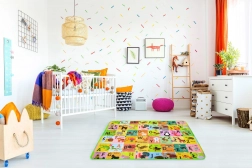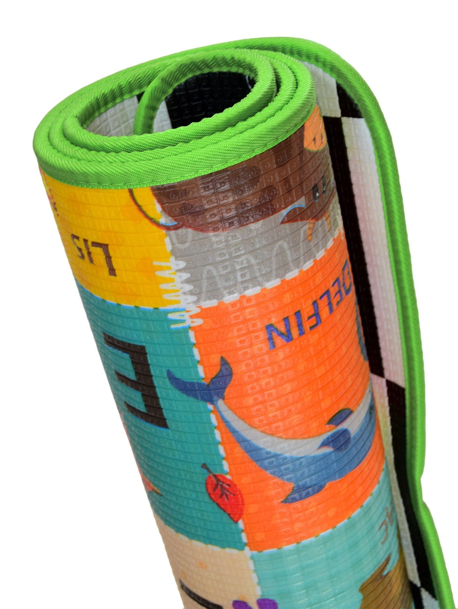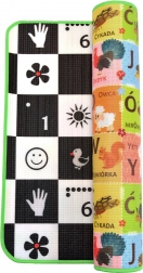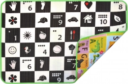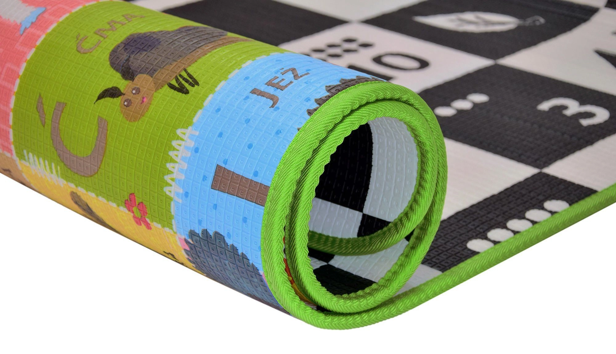 Objavte praktickú podložku na každodenné hranie, plazenie aj prvé krôčiky. Vďaka hrúbke 1 cm poskytuje výborné tlmenie nárazov a izoláciu od studenej podlahy. Kontrastná strana so šachovnicou a číslami 1–10 podporuje vizuálne vnímanie a prvé počítanie, zatiaľ čo farebná abeceda so zvieratkami rozvíja slovnú zásobu a zvedavosť detí.
