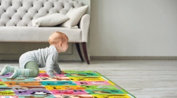 1 cm hrubá EPE pena tlmí pády, izoluje chlad a protišmykový reliéf podporuje istotu pri plazení a prvých krôčikoch.