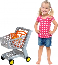 Otvorený kôš, madlo a štyri kolieska napodobňujú skutočný vozík zo supermarketu – deti si užijú autentické nakupovanie.
