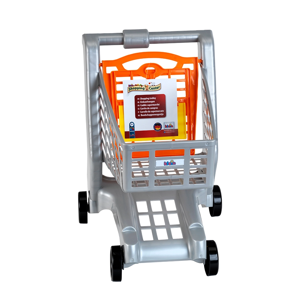 Ľahký a stabilný detský nákupný vozík od značky KLEIN poteší všetkých malých predavačov a zákazníkov. Má odolnú plastovú konštrukciu, 4 hladko jazdiace kolieska, pohodlné madlo na ľahké tlačenie a oranžovo‑žlté sedadlo pre bábiku či plyšáka. Ideálny na hru na obchod a rozvoj fantázie a sociálnych zručností.