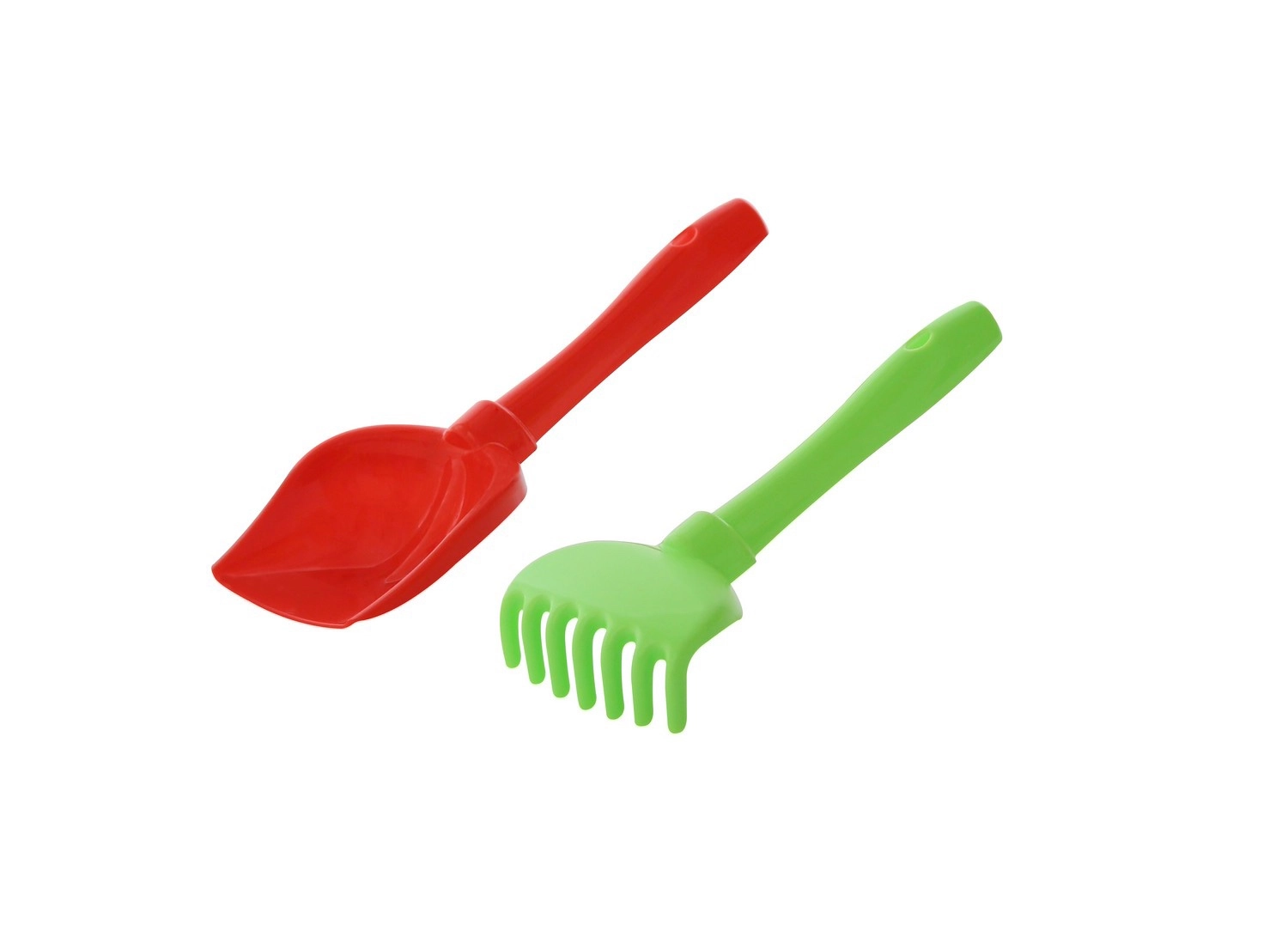Vyberte si praktického pomocníka na zábavu vonku: lopatka na naberanie a presýpanie, hrabličky na uhladzovanie a vytváranie štruktúr. Sada je dostupná v mixe farieb – konkrétne farebné prevedenie dodávame podľa aktuálnej skladovej dostupnosti.