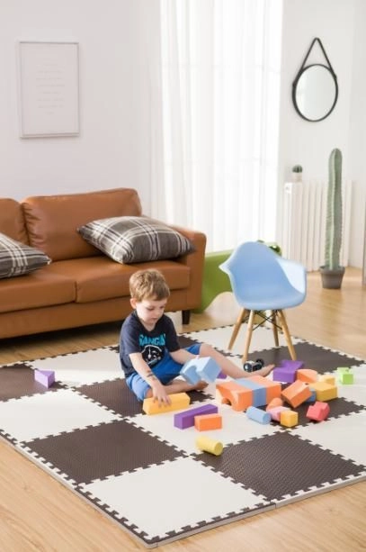 Bezpečnosť a hygiena na prvom mieste – pružná EVA pena je vodoodolná, ľahko umývateľná a nepohlcuje prach ani roztoče. Materiál je hypoalergénny, bez škodlivín (bez ftalátov, formamidu, BPA a PVC) a produkt nesie označenie CE a spĺňa EN 71-1/2/3 a REACH.