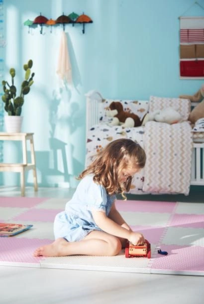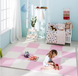 Podložka je vodoodolná a ľahko umývateľná – stačí ju utrieť vlhkou handričkou. Na rozdiel od kobercov nepohlcuje prach ani roztoče a je šetrná k citlivej detskej pokožke. Neutrálna, jemná ružová farba zapadne do každého interiéru.