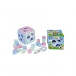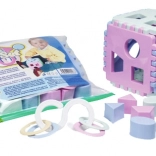 Táto univerzálna sada prináša deťom radosť z objavovania. Vkladacia kocka učí správne priraďovať tvary, zatiaľ čo hrkálkové krúžky stimulujú sluch a pomáhajú rozvíjať koordináciu ruka–oko. Vďaka pestrým farbám a príjemným povrchom hračka podporuje zrak aj hmat.