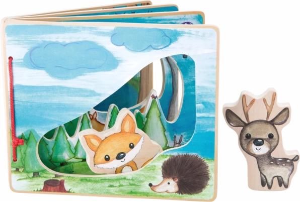 Vstúpte do hlbokého lesa s interaktívnou drevenou knihou, ktorá stimuluje fantáziu detí. Vďaka figúrkam líšky a jeleňa, ktoré pomáhajú objavovať flóru a faunu, sa stane každá hra jedinečným zážitkom.<