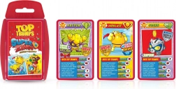 Obľúbená séria Top Trumps prináša edíciu so svetom SUPER ZINGS z Kaboom City. Každá karta predstavuje postavu s piatimi číselnými atribútmi (napr. mágia, odvaha, múdrosť). Vyberte si najlepšiu vlastnosť, porovnajte s ostatnými a získajte ich karty. Najvyššia hodnota vyhráva – hráte, kým jeden hráč nepozbiera celý balíček.