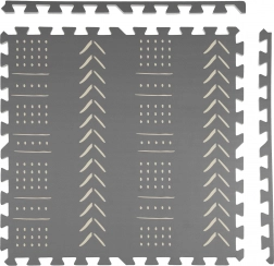 Štýlová a praktická detská penová podložka HUMBI sa skladá z 3 veľkých dielov 60 × 60 cm a 6 okrajov. Ponúka mäkký povrch na hranie, vynikajúcu izoláciu od chladu, je vodeodolná, protišmyková a ľahko sa čistí. Neobsahuje škodlivé látky a spĺňa normy EN 71 a REACH. Decentné sivé boho vzory skvele zapadnú do každého interiéru.