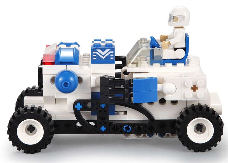Postavte si rozkošného robota alebo svižné vozidielko zo stavebnice CaDA s 195 dielmi. Modely v bielo-modrej kombinácii majú pohon pull-back pre rýchlu jazdu až do 10 metrov, 4 kolesá pre hladký pohyb a detailné spracovanie, ktoré poteší malých aj veľkých staviteľov.