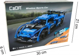 Postavte si vlastné športové auto Shadow od značky CADA z 380 dielikov. Model má naťahovací (pull‑back) pohon, gumené kolesá na jazdu po rôznych povrchoch a pohyblivé prvky vrátane spojlera, volantu a otváracích dverí. Modrá karoséria s čiernymi detailmi poteší malých aj veľkých fanúšikov stavebníc a áut.