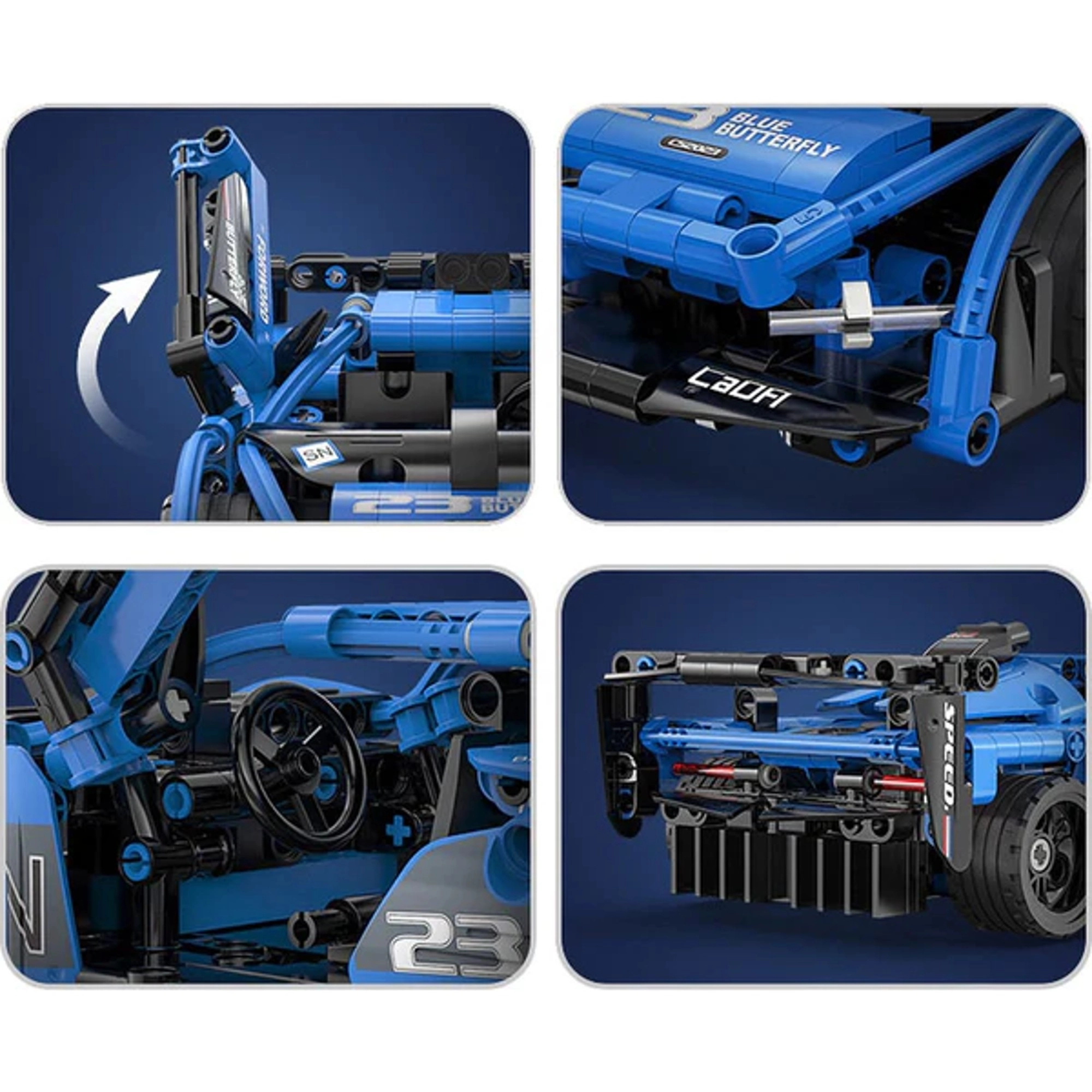 Model v elegantnej modrej farbe s čiernymi prvkami ponúka otváracie dvere, nastaviteľný spojler a funkčný volant. Diely sú kompatibilné s ďalšími setmi CADA, takže môžete rozširovať svoju zbierku a tvoriť ešte väčšie konštrukcie. Balenie je reprezentatívne, ideálne ako darček pre deti od 6 rokov aj nadšených staviteľov.