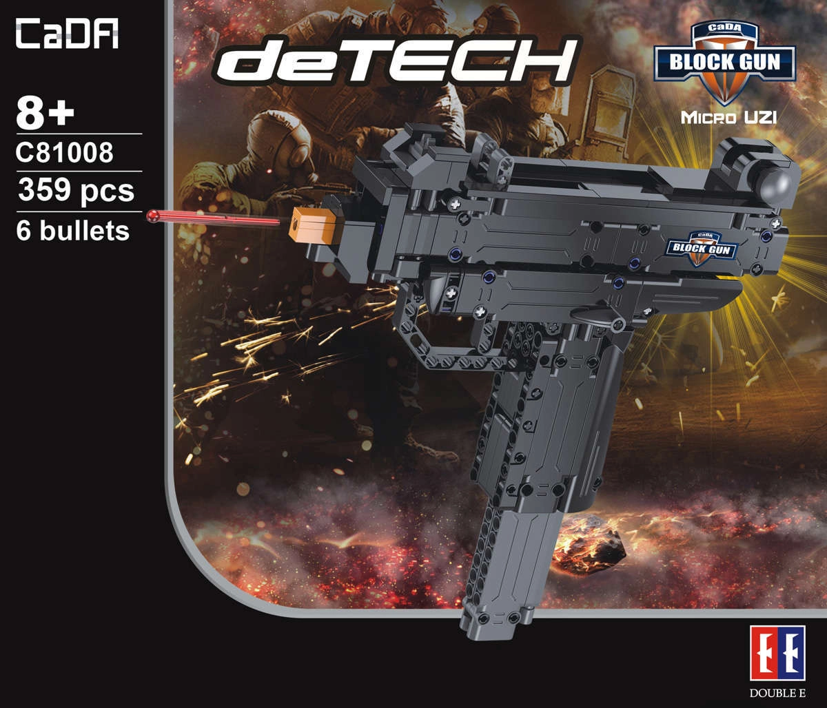 Táto technická stavebnica umožní deťom aj dospelým poskladať realisticky vyzerajúci model Micro UZI z prepojiteľných dielikov. Vďaka šikovným konštrukčným prvkom má model pohyblivé časti, funkčnú blokáciu a možnosť bezpečného vystrelenia priložených mäkkých projektilov. Odolné plastové komponenty zabezpečujú dlhú životnosť a stabilitu modelu.