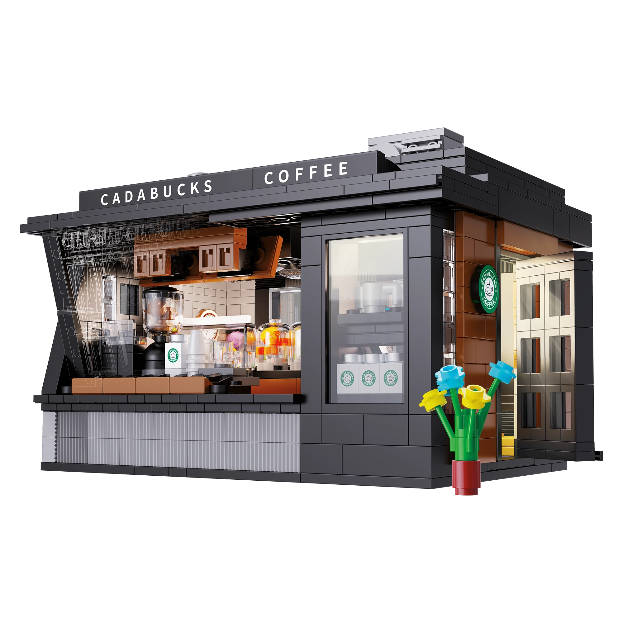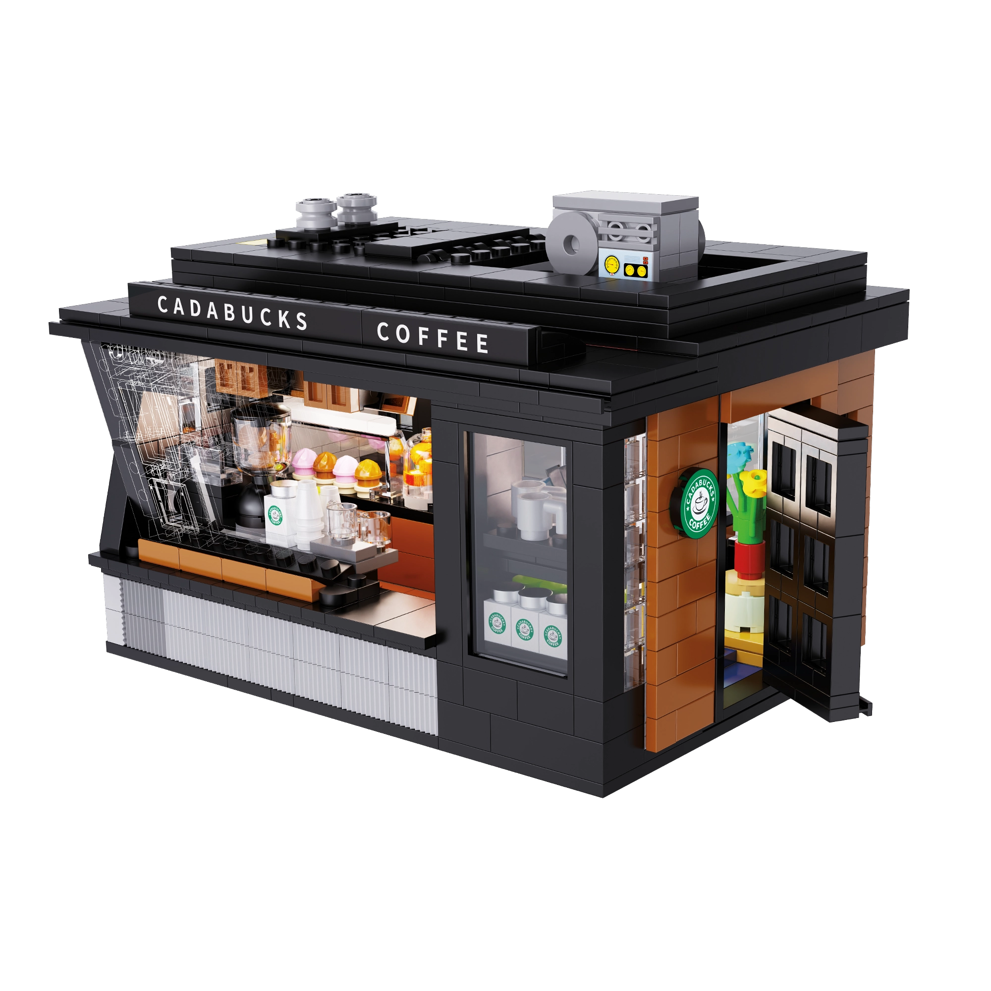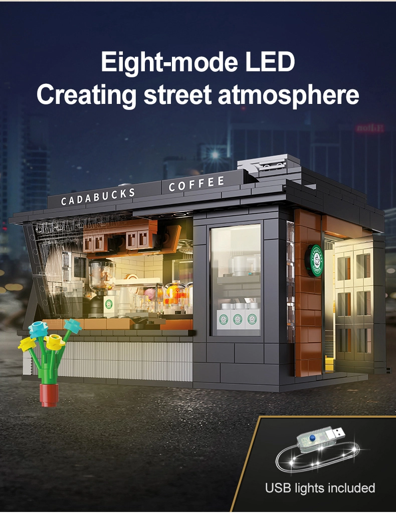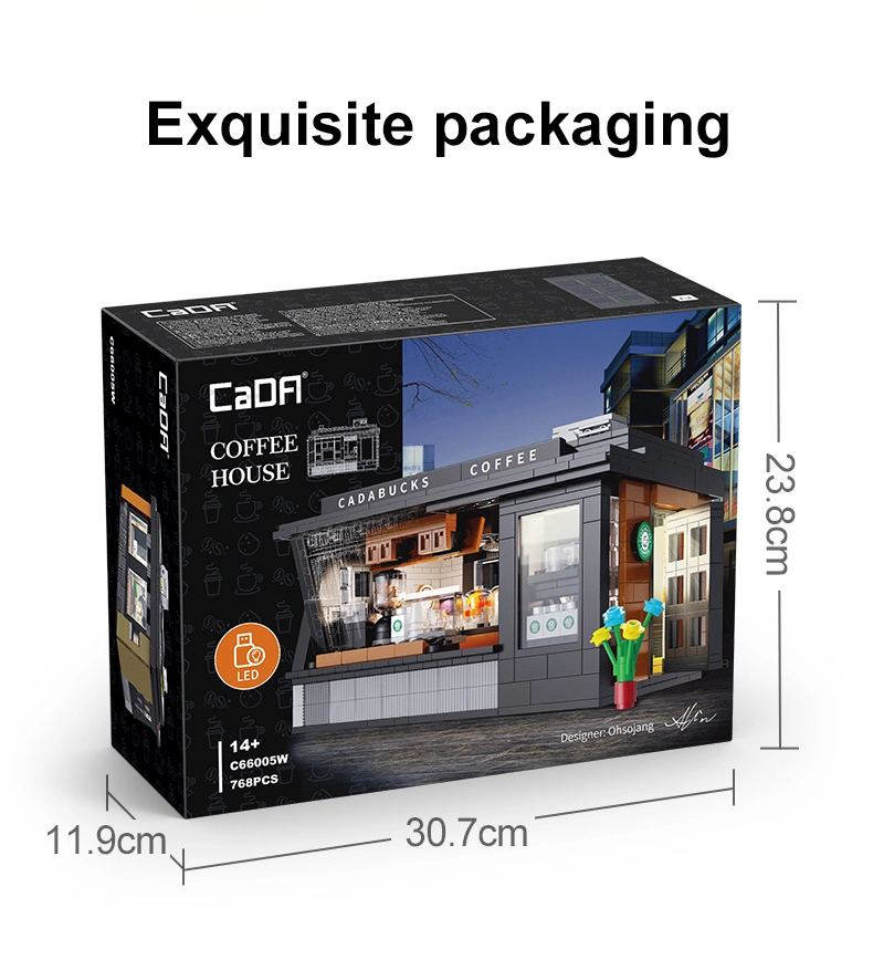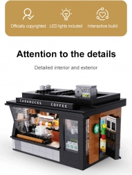Postavte si vlastnú mini kaviareň s modelom Cadabucks Coffee House od značky CaDA. Stavebnica obsahuje 768 dielikov, detailný interiér baristu aj zákazníckej zóny a funkčné LED osvetlenie pre autentickú atmosféru. Odnímateľný zadný diel a strecha zabezpečujú ľahký prístup dovnútra, nechýbajú vitríny, cedule, dvere a množstvo realistických doplnkov.