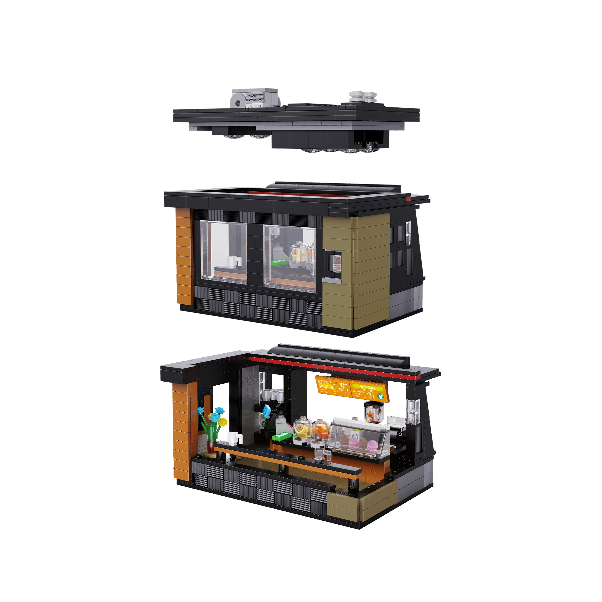 Vytvorte si štýlový výklad aj útulný interiér s kávovarom, vitrínou s dezertmi, šálkami a dekoráciami. Vďaka LED pásiku na USB získa kaviareň večer aj cez deň jedinečný kaviarenský vibe. Modulárna konštrukcia s odnímateľnou strechou a zadnou stenou uľahčuje hranie aj vystavenie na poličke.