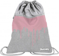 Sivo‑ružový drip dizajn s logom BeUniq spája moderný vzhľad so spevneným chrbátom a silnými šnúrkami pre pohodlné nosenie.