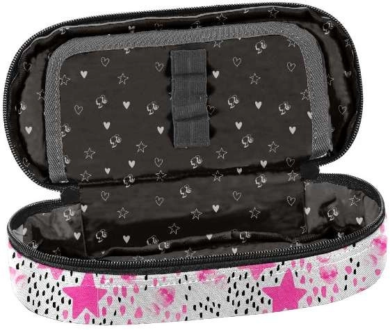 Štýlový školský peračník BeUniq s motívom BARBIE ponúka jednu priestrannú komoru a praktické vnútorné členenie. Vďaka elastickým úchytom na písacie potreby a sietkovanému vrecku na zips budete mať všetko prehľadne na jednom mieste. Odolné prevedenie z polyesteru, kompaktné rozmery a moderný čierno‑ružový dizajn sú ideálne do školy aj na cesty.