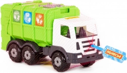 Auto je bez pohonu a funguje čisto mechanicky – deti tak môžu samy ovládať zdvíhanie a vysýpanie koša, otváranie horného veka a vyklápanie celej korby. Vďaka robustnému prevedeniu je vhodné aj na kolektívne hranie v škôlkach.