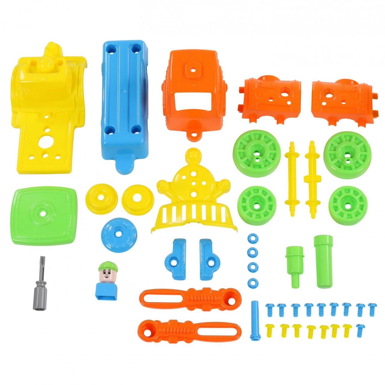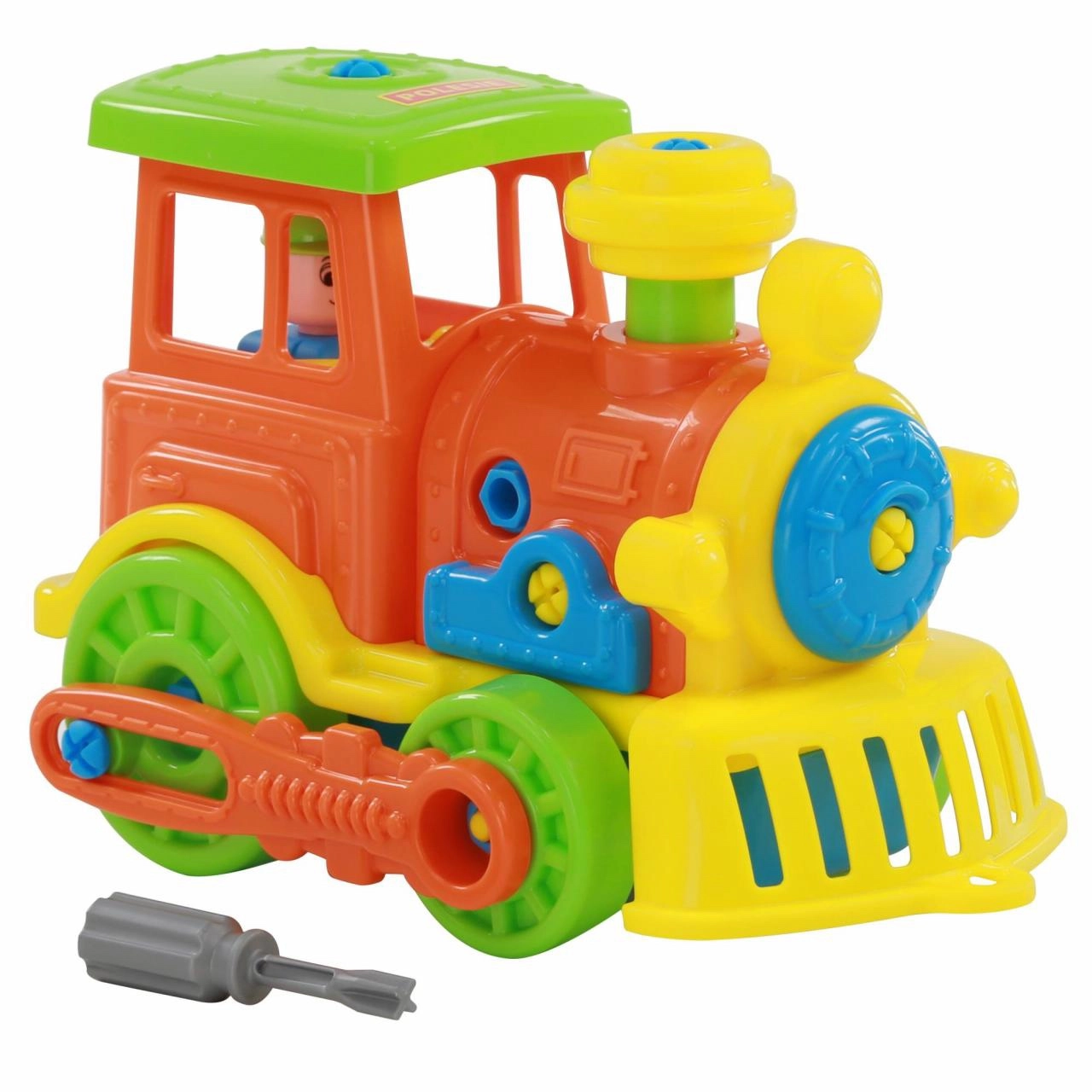 Táto farebná rozoberateľná mašinka je ideálna pre deti, ktoré milujú stavanie a vlaky. Robustné plastové diely, veľké kolesá a viditeľné skrutky nabádajú k skúmaniu a učeniu formou hry. Detský skrutkovač je súčasťou balenia, takže mašinku možno opakovane rozoberať a skladať.