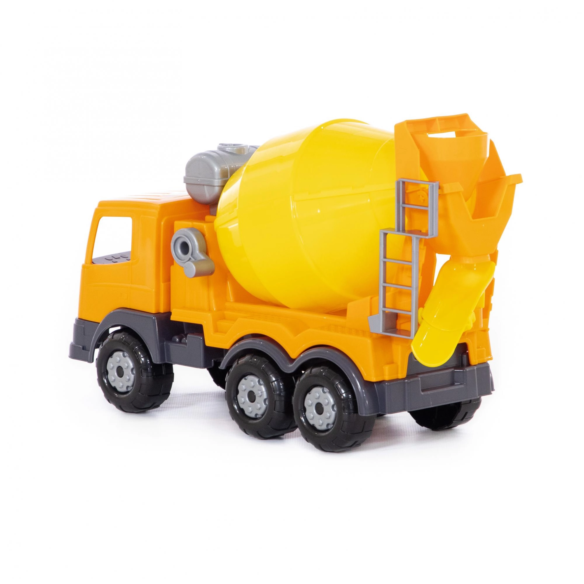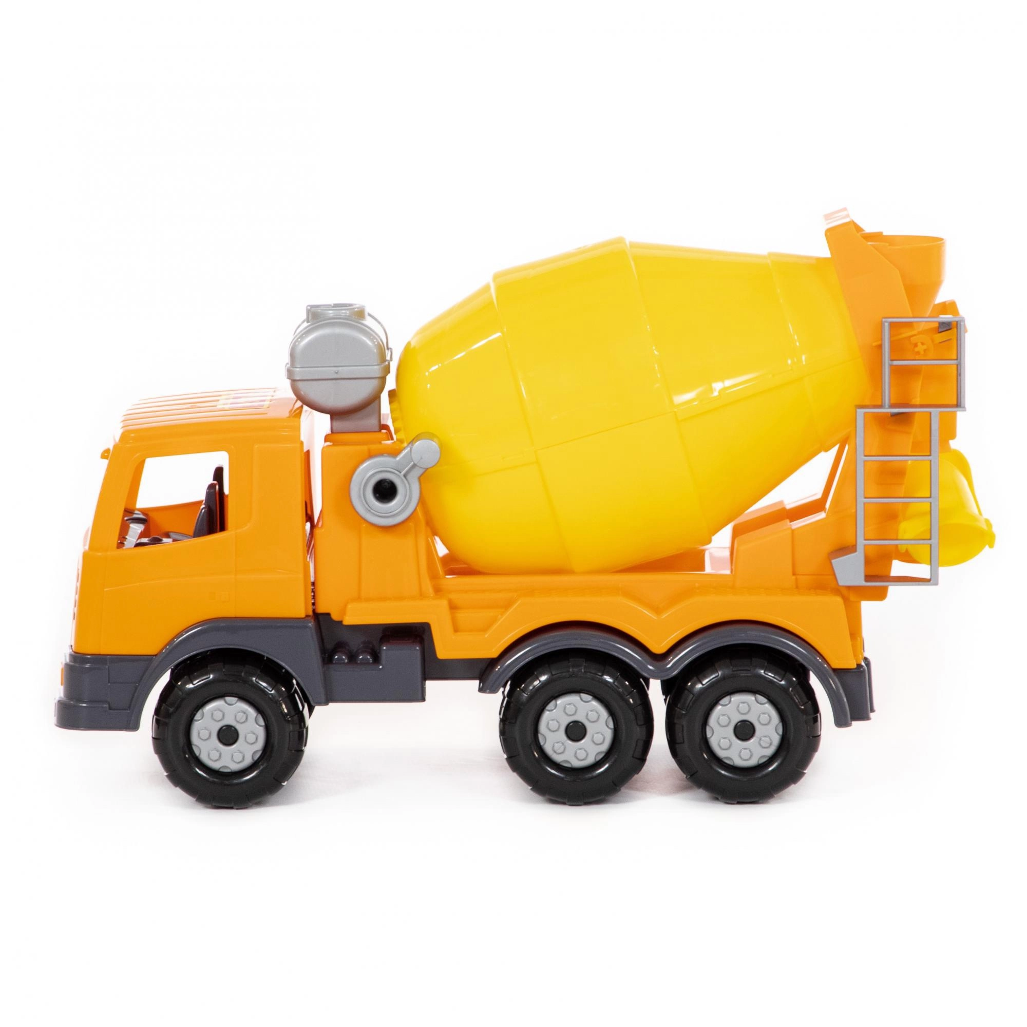 Vďaka ručnej kľuke môžu deti ľahko otáčať bubnom a napodobniť skutočné miešanie betónu – realistická hra, ktorá rozvíja motoriku.