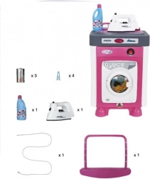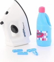 Súčasťou balenia je kompletná výbava pre malých pomocníkov: herný panel/žehliaca doska s textilným povrchom na bezpečné „žehlenie“, detská žehlička, vešiak/sušiak na prádlo s povrázkom a 4 štipce. Vďaka priloženým batériám je možné ihneď po rozbalení začať hrať.