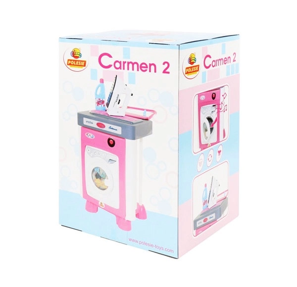 Táto štýlová detská práčka CARMEN 2 prináša deťom zábavnú a realistickú hru na domácnosť. Predné dvierka sa otvárajú a zatvárajú so zvukovým signálom, po zvolení programu sa roztočí bubon a ozvú sa zvuky prevádzky. Celá sada podporuje fantáziu, jemnú motoriku aj rozvoj každodenných zručností.