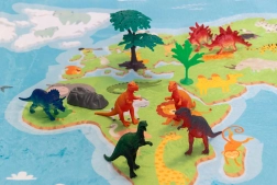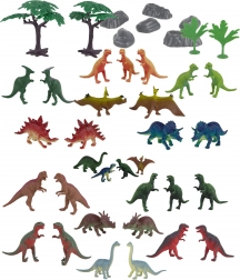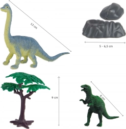 Rozmanitý výber dinosaurov, stromov a kameňov umožní deťom vytvárať vlastné prehistorické scenérie a rozvíjať fantáziu aj vytrvalosť v hre.