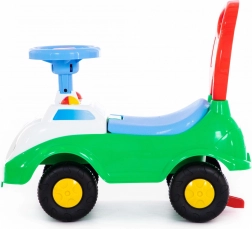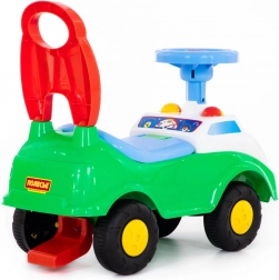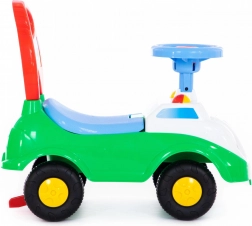 Volant so zvukovým modulom pridáva zábavu a motivuje deti k dlhšej hre. Zadné operadlo možno využiť ako madlo – dieťa sa môže pridŕžať, tlačiť odrážadlo pred sebou a trénovať koordináciu a rovnováhu. Kompaktné rozmery 56 × 24 × 57 cm sa hodia do bytu aj na záhradu.