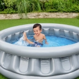 Nafukovací bazénik v tvare vesmírnej lode prináša deťom množstvo letnej zábavy a pohodlné schladenie. Vďaka mäkkému nafukovaciemu dnu a príjemným stenám slúžiacim ako opierka je pobyt vo vode komfortný aj pre najmenších. Bazén sa ľahko nafukuje a vypúšťa, takže jeho skladovanie aj prenášanie je hračka.