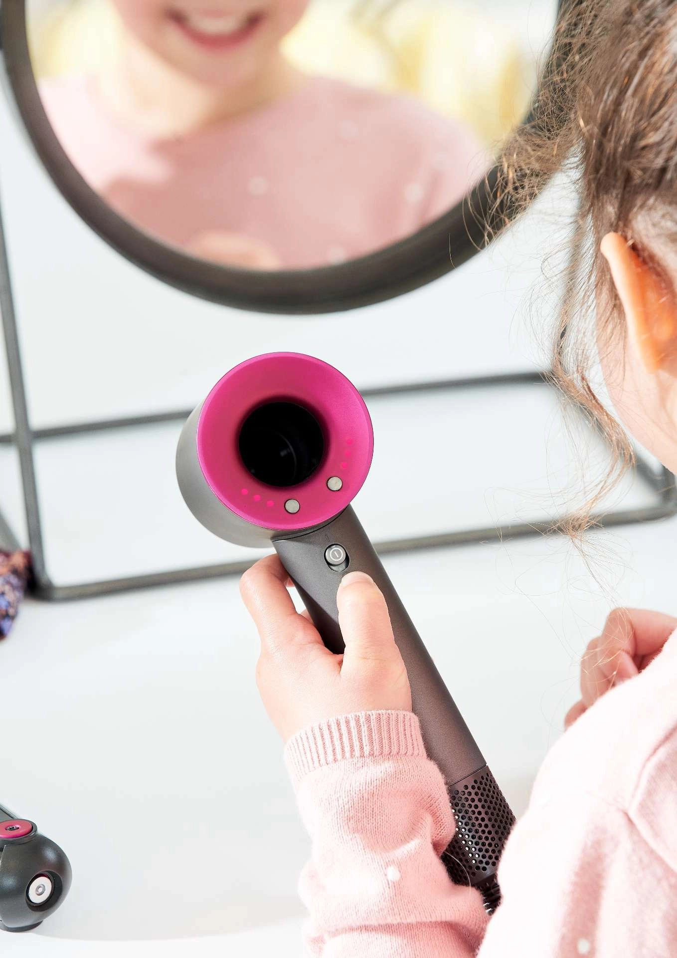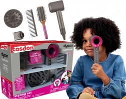 Detský kadernícky set CASDON s ikonickou sušičkou Dyson Supersonic prináša deťom autentický zážitok zo salónu. Hračka fúka vzduch, má svetelné efekty a vďaka magnetickým/vymeniteľným nadstavcom umožňuje meniť štýl sušenia. Priložená okrúhla kefa a široký hrebeň podporia fantáziu pri vytváraní účesov pre deti, bábiky aj kamarátov.