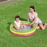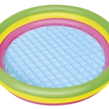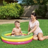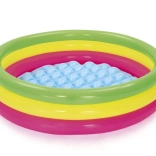Ľahký a skladný bazénik s priemerom 102 cm a výškou 25 cm je skvelou voľbou pre deti od 2 rokov. Tri farebné prstence s oddelenými ventilmi zabezpečujú stabilitu a bezpečie pri hraní, zatiaľ čo nafukovacie dno poskytuje extra komfort aj na tvrdších povrchoch. Kapacita 62 litrov je akurát na príjemné ochladenie a prvé vodné hry.