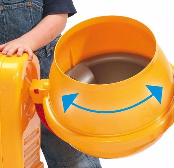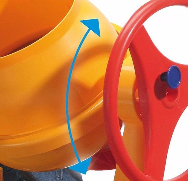 Táto robustná detská miešačka je navrhnutá tak, aby čo najvernejšie napodobňovala skutočný stavebný stroj. Vďaka mechanickému otáčaniu kľukou môžu deti ľahko miešať „betón“ a prenášať zmes pomocou sklápacieho bubna s viacerými aretačnými polohami.
