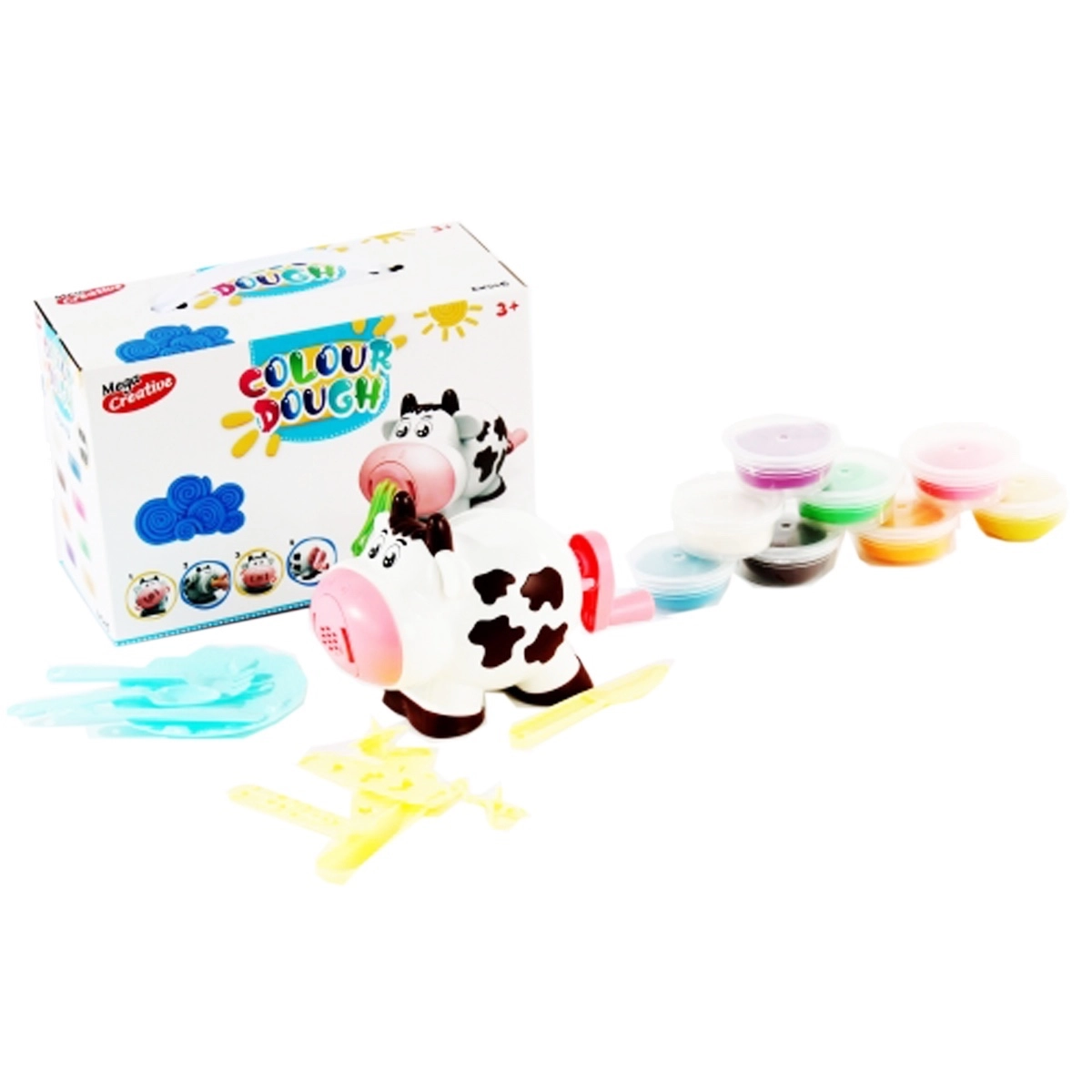 Kreatívna sada s motívom kravičky prináša deťom hodiny zábavy a učenia. Obsahuje 6 farieb modelovacej hmoty, lis s vymeniteľnými hrotmi, formičky a príslušenstvo na modelovanie. Podporuje rozvoj predstavivosti, jemnej motoriky a tvorivosti, je vhodná pre deti od 3 rokov a nevyžaduje batérie.