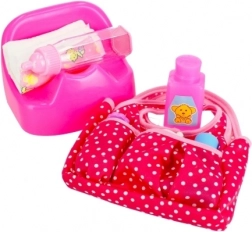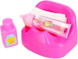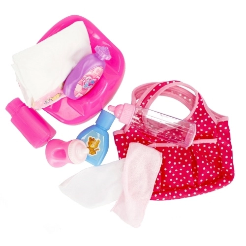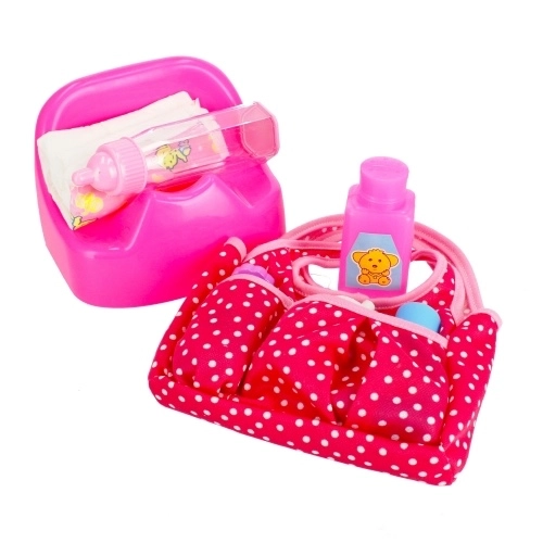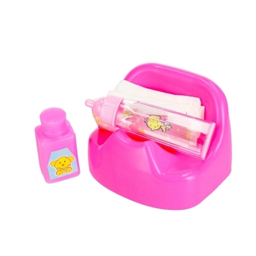 Táto kompletná detská sada prináša realistické doplnky na starostlivosť o bábiky: tašku na potreby, prebaľovací pult, nočník, plienku, púder a hneď niekoľko fľaštičiek. Vďaka odolnému plastovému prevedeniu a ľahkým, kompaktným dielom je ideálna na doma aj na cesty.