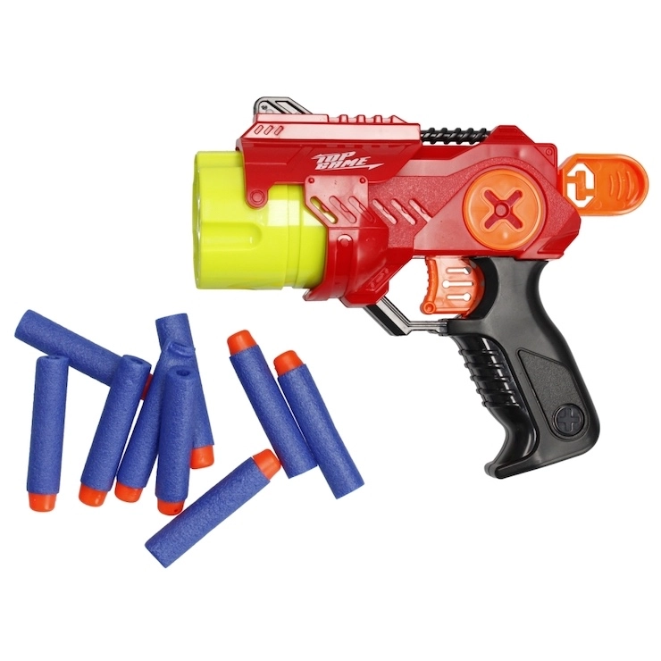 Obsah balenia zahŕňa pištoľ a 9 penových šípok, čo je perfektná štartovacia sada na súťaže v presnosti aj rýchlosti. Na výber sú dve atraktívne farby – červená a modrá. Hračka je určená pre deti od 8 rokov a je balená v krabici s okienkom, takže je skvelá aj ako darček.