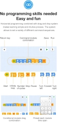 Režim Dual Mode umožňuje ovládanie dvoma spôsobmi: cez 2,4 GHz ovládač (plynulá jazda vpred/vzad a zatáčanie) alebo cez mobilnú aplikáciu Bluetooth s dosahom cez 25 m. V aplikácii nájdete hneď 4 režimy riadenia – od klasického ovládača po gyroskopické ovládanie a programovanie trasy. To rozvíja kreativitu, predstavivosť aj technické zručnosti.