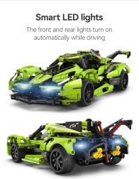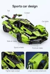 Postavte si vlastné zelené športové auto Blade od značky CaDA a ovládajte ho na diaľku pomocou RC ovládača 2,4 GHz alebo aplikácie Bluetooth. Stavebnica obsahuje 432 dielikov, funkčné predné a zadné LED svetlá, gumové kolesá na jazdu po rôznych povrchoch a dosah ovládania cez 25 metrov. Maximálna rýchlosť až 5,5 km/h a elegantné balenie robia z tejto sady skvelý darček pre malých aj veľkých konštruktérov.