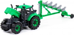 Tento realistický traktor s prívesom a pluhmi prináša deťom množstvo herných scenárov – od práce na poli až po servis v dielni. Inerciálny (zotrvačníkový) pohon zlepšuje priechodnosť na rôznych povrchoch a zabezpečuje dlhšiu jazdu po jedinom postrčení. Vďaka otvárateľnej kapote s aretáciou môžu deti napodobňovať údržbu stroja a rozvíjať svoju predstavivosť.