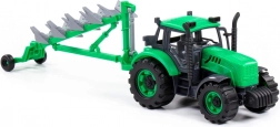 Súčasťou je príves s pluhom, ktorého pracovné strany možno meniť, čo dodáva hre pestrosť a učí deti základom poľnohospodárskych činností. Hračka je dodávaná v farebnej darčekovej krabici, vhodná ako darček pre chlapcov aj dievčatá.