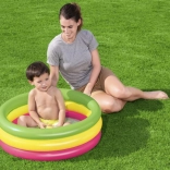 V horúcich letných dňoch nie je pre vaše najmenšie nič lepšie osvieženie než v nafukovacom bazéniku! Bazénik je vhodný ako brodisko. Farebný trojkomorový nafukovací bazén, ktorý sa hodí na záhradu, kde deťom určite urobí veľkú radosť. Podlaha z mäkčeného PVC zabraňuje odreninám a pôsobí protišmykovo.