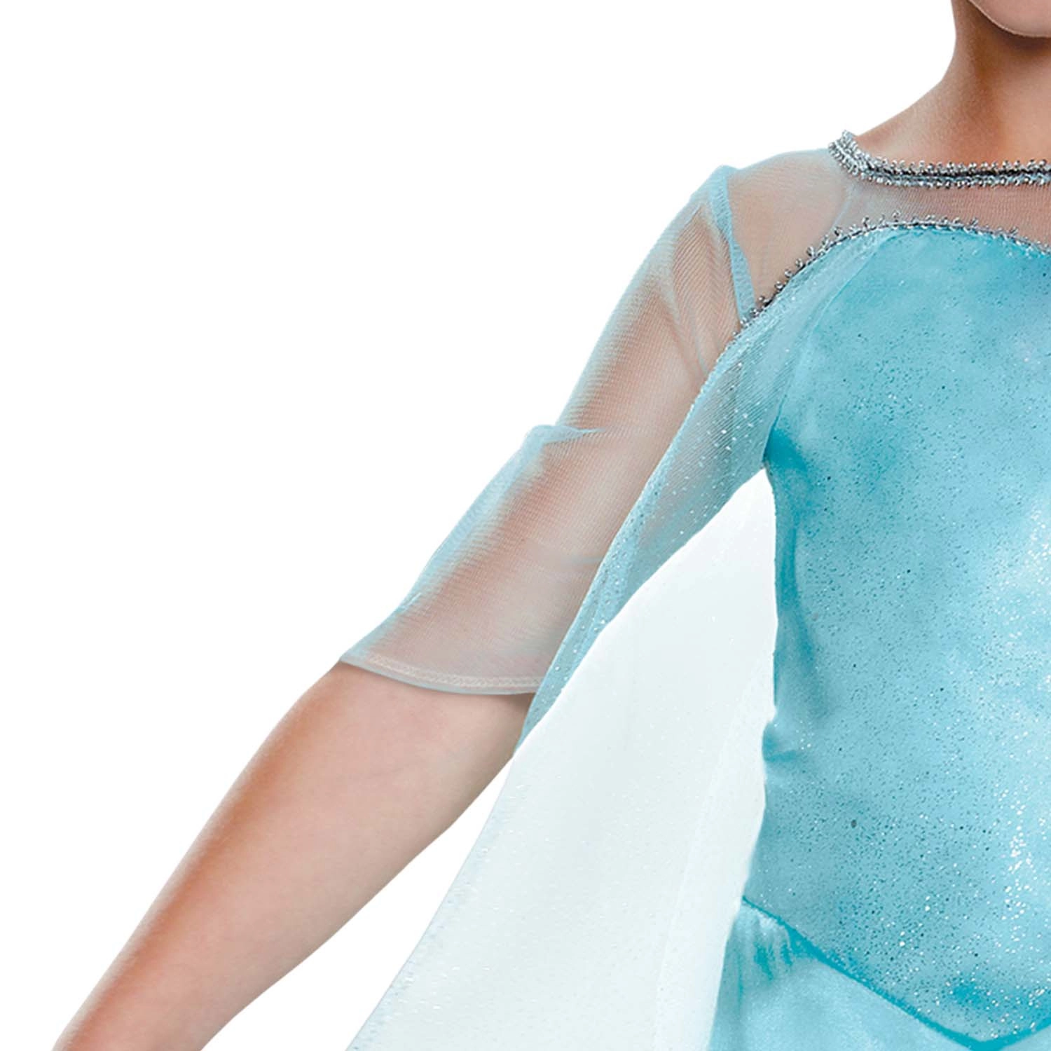 Šaty sú navrhnuté pre deti vo veku 3–4 roky (výška 94–109 cm). Polopriesvitné rukávy a trblietavé detaily podčiarkujú čarovný dojem, zatiaľ čo saténovo lesklá sukňa dodáva kostýmu slávnostný vzhľad. Zapínanie na chrbte uľahčuje obliekanie.
