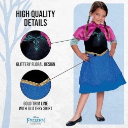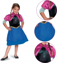 Súčasťou sú šaty v modrých a satinovo čiernych tónoch a krátka ružová pláštenka, vďaka ktorým je vzhľad verný postave Anny. Kostým je určený pre deti vo veku 5–6 rokov a sadne deťom s výškou 109–123 cm.
