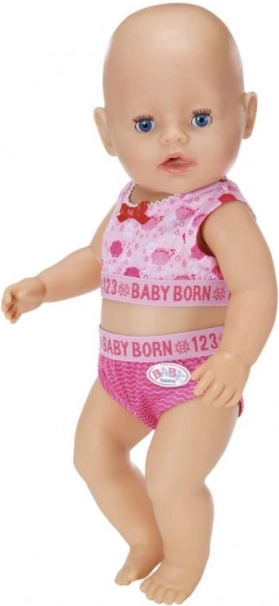 Štýlová a pohodlná spodná bielizeň pre bábiky BABY BORN 43 cm v dvoch prevedeniach – nežná ružová s motívom mušličiek a svieža modrá s kvapkami. Vďaka pružným lemom a premyslenému strihu sa oblečky ľahko obliekajú a skvele držia. Ideálne pre dlhotrvajúcu kreatívnu hru, jednoduché prezliekanie a rozširovanie šatníka bábiky.