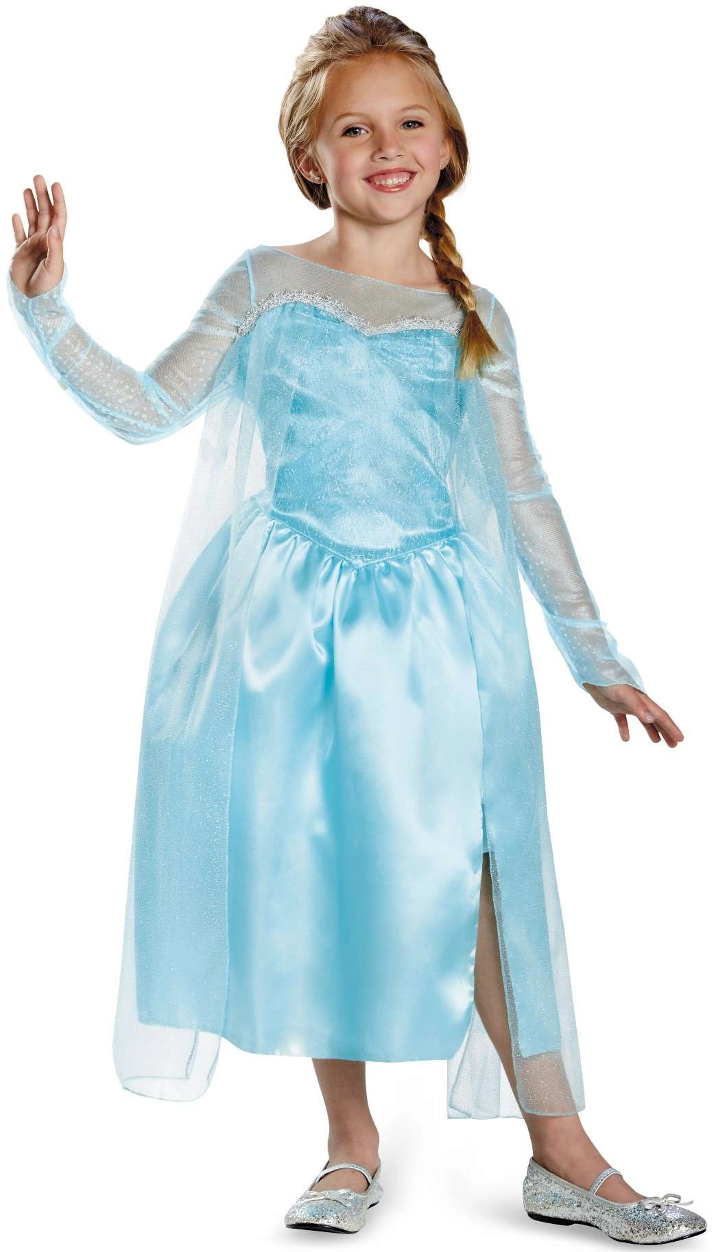 Kostým inšpirovaný rozprávkou DISNEY Frozen premení každé dievčatko na obľúbenú princeznú Elsu. Šaty s dlhým rukávom sú vyrobené z ľahkého, lesklého a príjemného materiálu, ktorý zaisťuje komfort pri celodennom nosení. Trblietavé prvky a farebné ladenie do modra a striebra dodávajú autentický vzhľad.