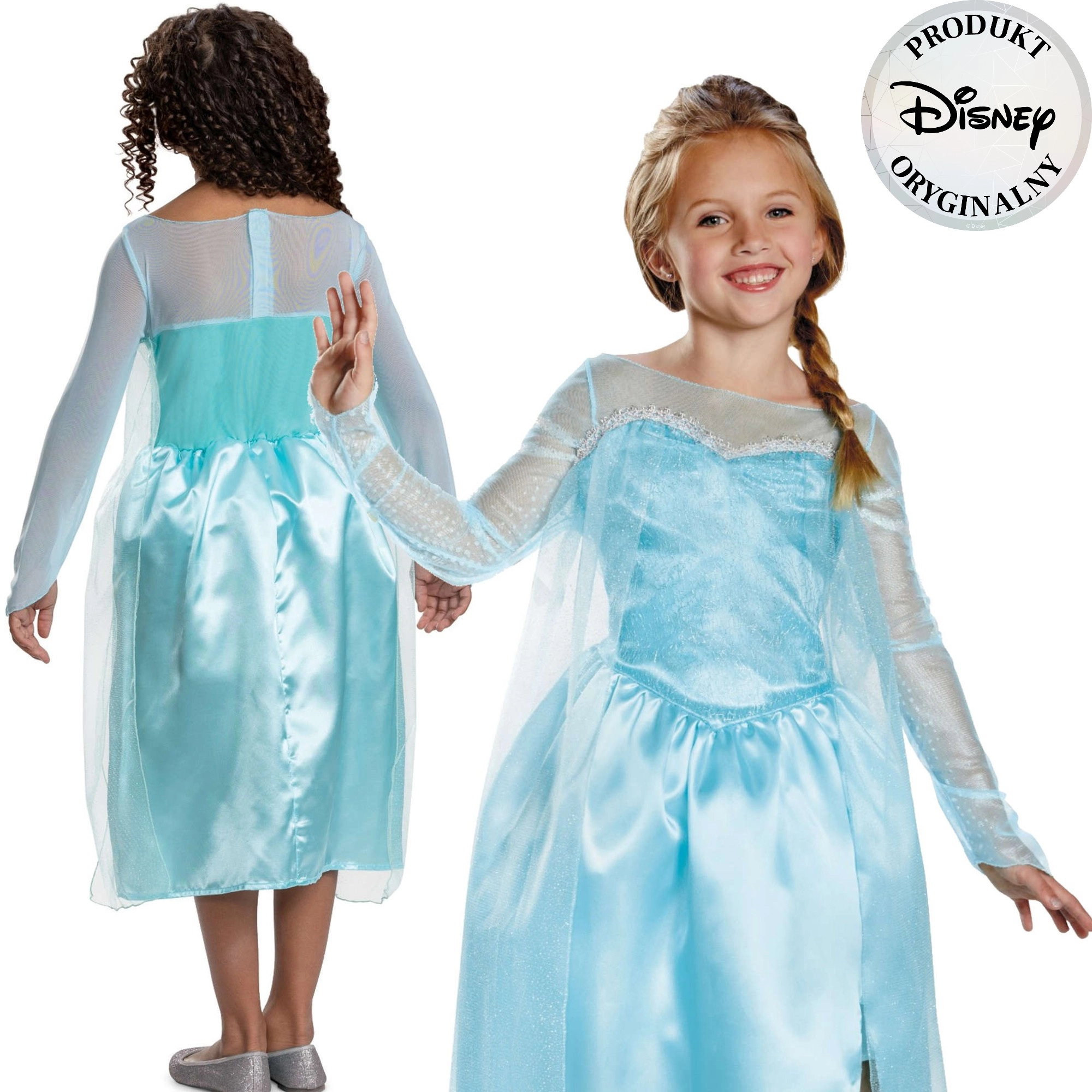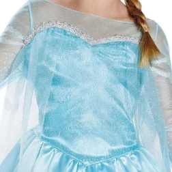 Vstúpte do čarovného sveta Arendelle s oficiálne licencovaným kostýmom DISNEY inšpirovaným postavou Elzy z filmu Frozen (Ľadové kráľovstvo). Šaty majú trblietavý živôtik, vzdušné sieťované rukávy a ľahučký plášť, vďaka čomu pôsobia skutočne kráľovsky. Materiál je príjemný a pohodlný na celodenné nosenie.