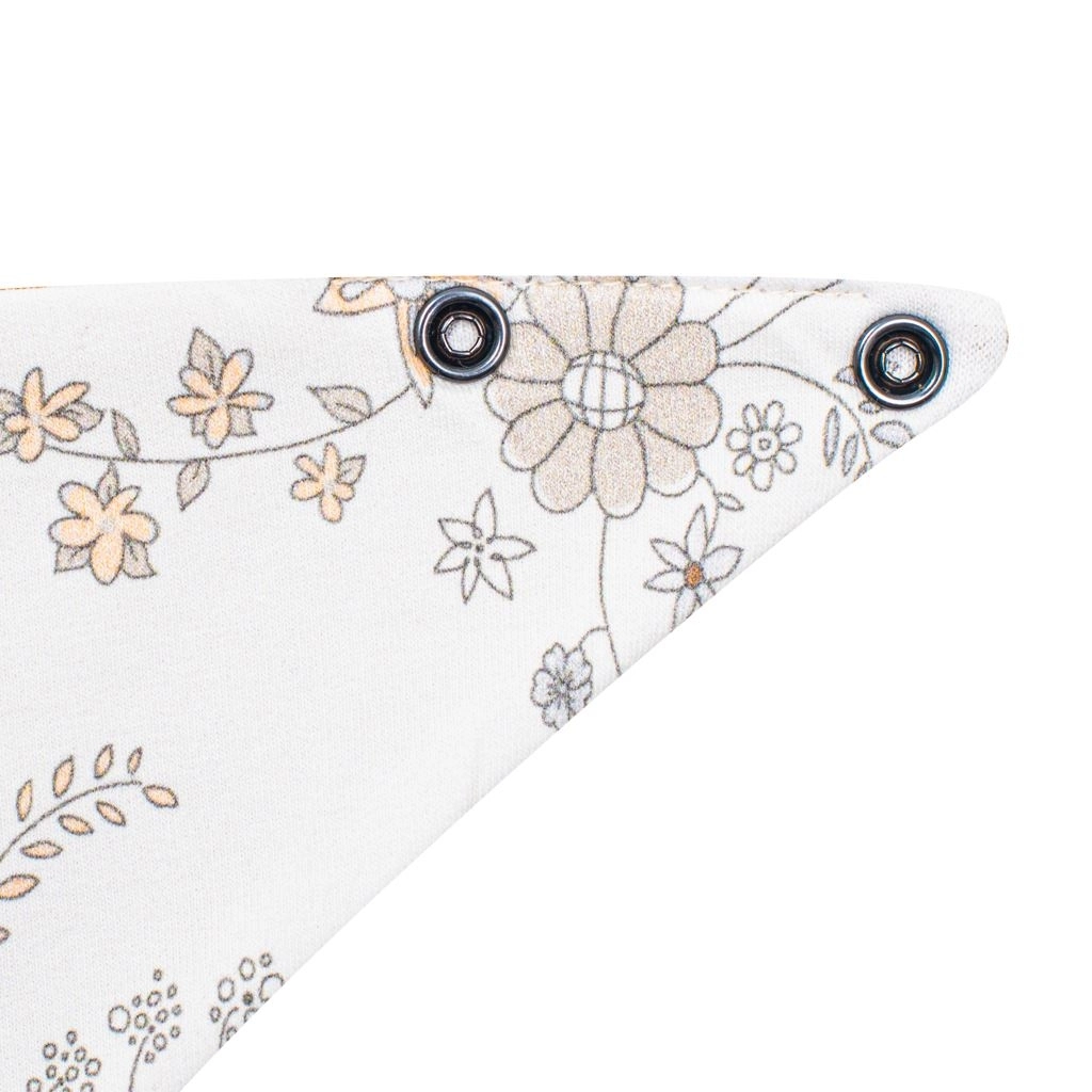 Hebký úplet s podielom elastanu je príjemný na pokožke. Neutrálny béžový kvetinový motív sa ľahko kombinuje s detským šatníkom.