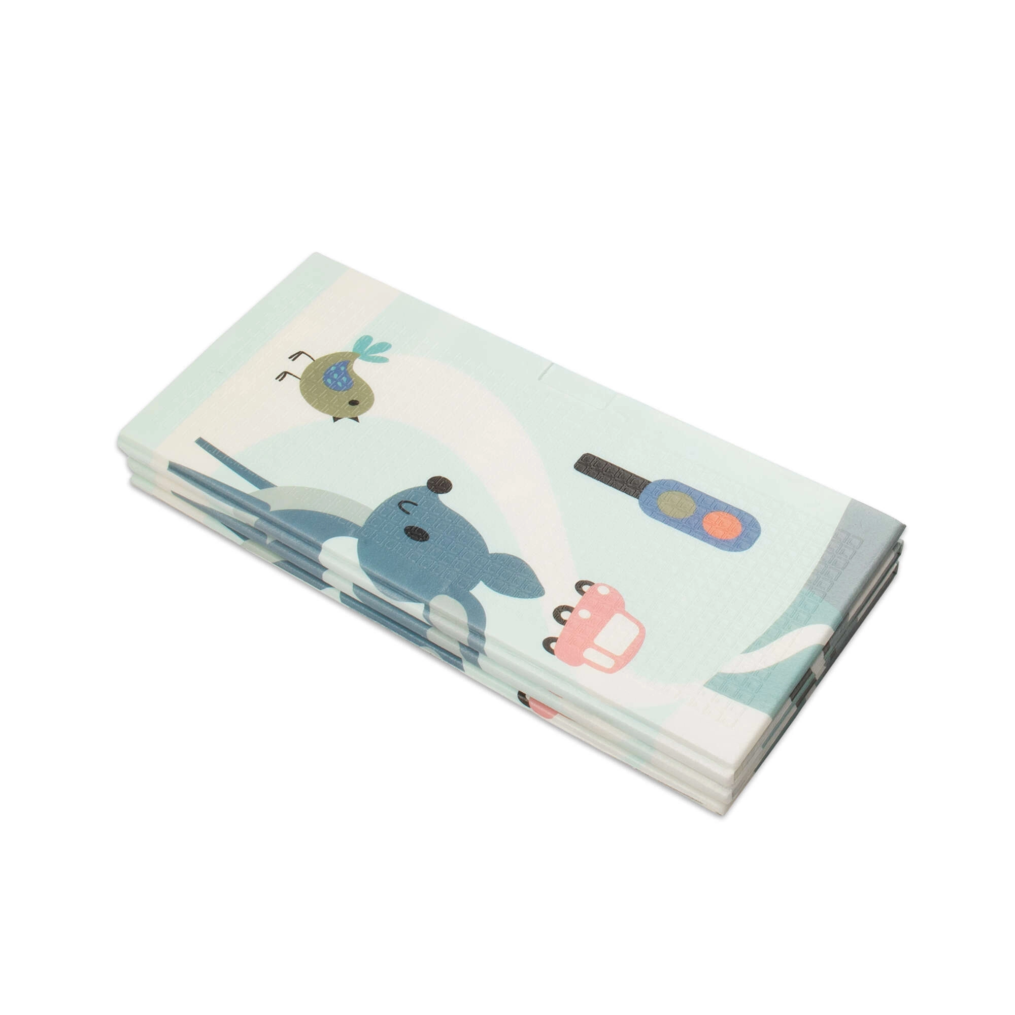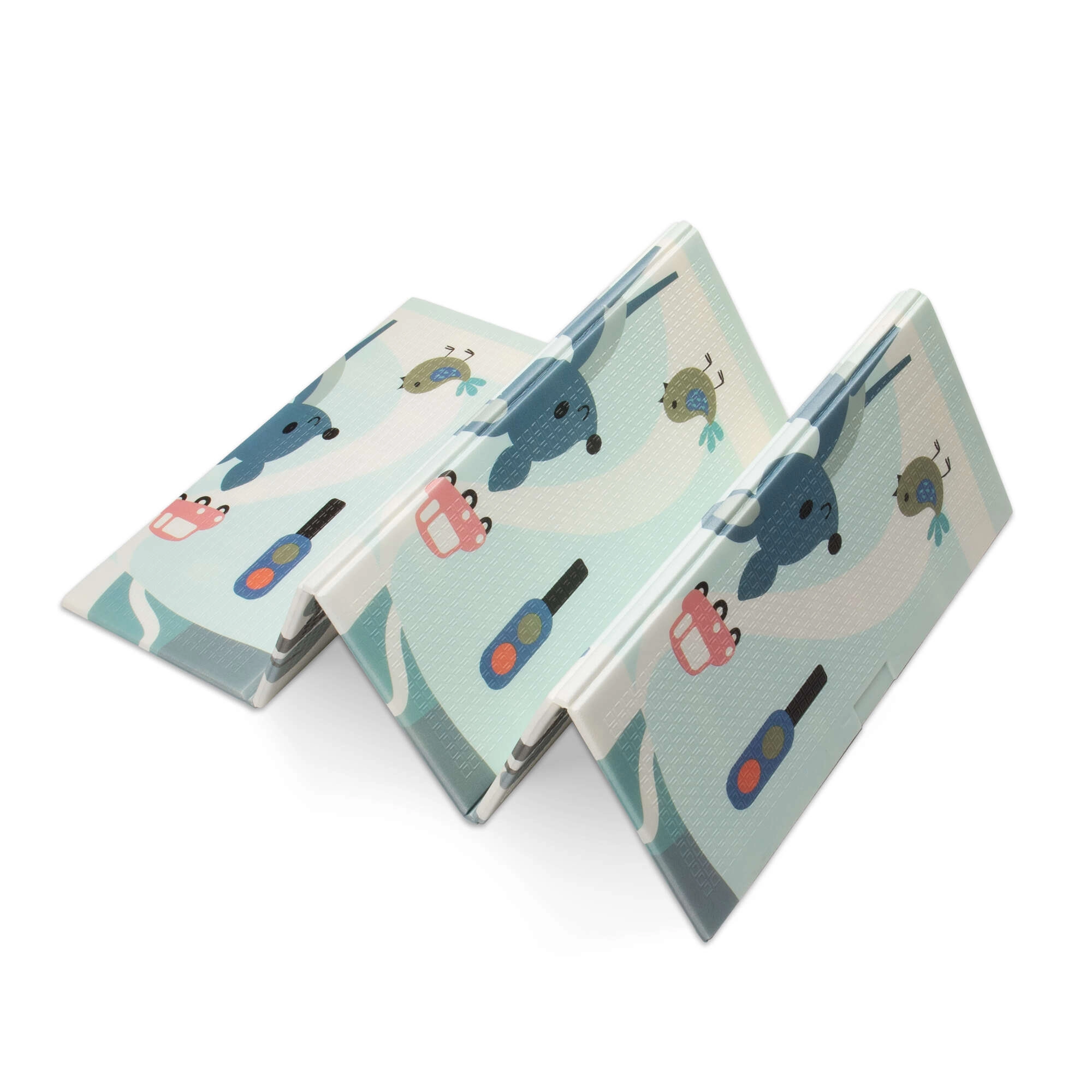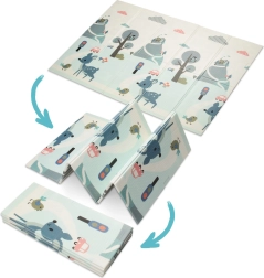 Podložka je skladacia do harmoniky, takže ju počas pár sekúnd rozložíte či uložíte. Je ľahká, vodoodolná a stačí ju utrieť vlhkou handričkou – skvelá voľba aj pre alergikov, pretože nezachytáva prach ani roztoče. Súčasťou je zipsová taška s ušami na pohodlné prenášanie do záhrady, na balkón, piknik alebo na cesty.