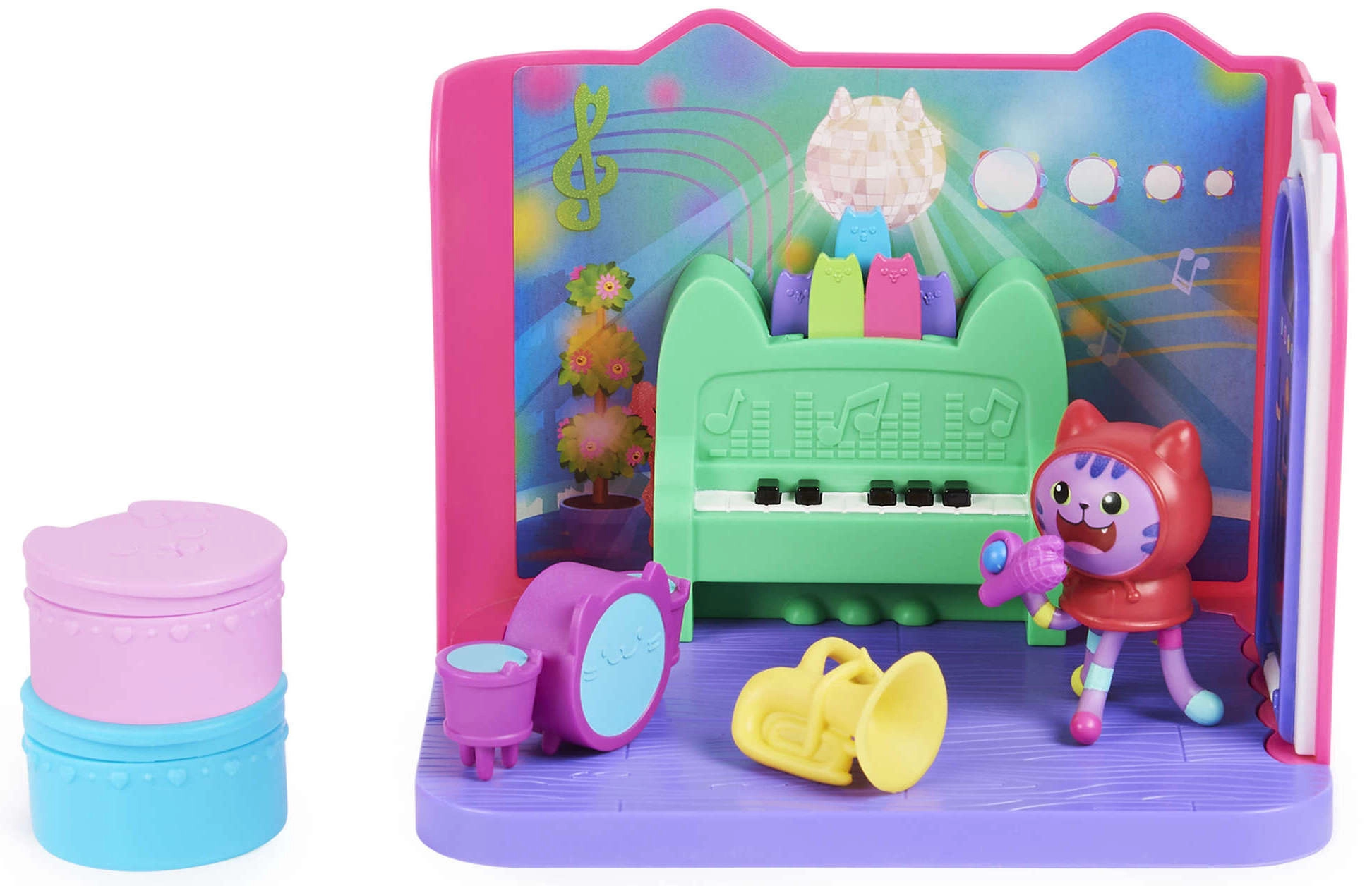 Vstúpte do sveta Gabkinho domčeka s hudobnou izbou DJ Catnip, ktorá ponúka množstvo interaktívnej zábavy. Deti môžu objavovať rytmy, tvoriť príbehy a užívať si kvalitne spracované doplnky, inšpirované obľúbeným seriálom. Ideálne ako rozšírenie pre veľký domček, no výborne funguje aj samostatne.