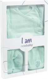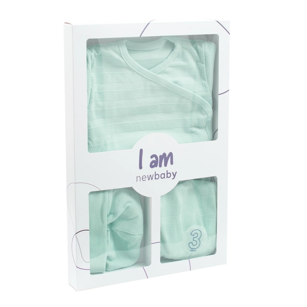 Súprava je zladená v modernej mätovej farbe s atraktívnym vzorom látky a je skvelou voľbou do pôrodnice aj na každodenné nosenie. Vďaka peknému baleniu v eko krabičke sa hodí tiež ako milý darček pre novopečených rodičov.
